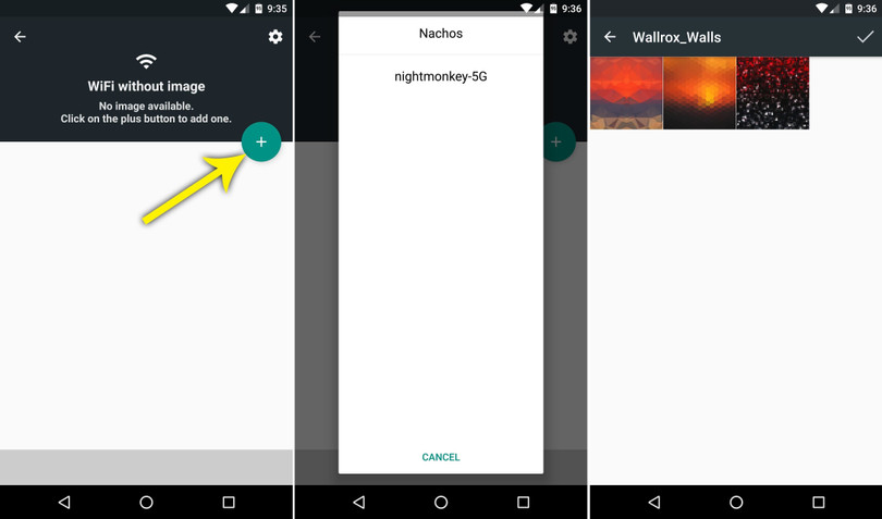Hãy chạm vào nút dấu cộng ở phía trên bên phải, rồi chọn mạng Wi-Fi từ danh sách. Bạn sẽ được yêu cầu chọn một hình nền cho mạng Wi-Fi, do vậy hãy sử dụng trình đơn duyệt file để chọn hình nền mong muốn. Áp dụng tương tự nếu bạn muốn thêm hình nền cho các mạng Wi-Fi khác.