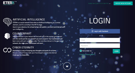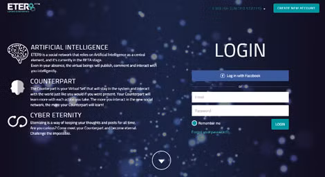 “Eter9 có khả năng làm bất tử người sử dụng và cung cấp cho họ khả năng vĩnh viễn tương tác bên trong hệ thống 24/7 thông qua một thành phần được gọi là đối tác, sẽ hoạt động ngay cả khi người dùng đang ngoại tuyến, cả về mặt nội dung thông tin lẫn bình luận”, công ty cung cấp dịch vụ Eter9 tuyên bố trên trang web riêng.