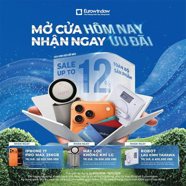 Ngoài ưu đãi về giá, chương trình còn triển khai quà tặng theo giá trị hợp đồng. Cụ thể, các hợp đồng từ 300 triệu đồng trở lên sẽ nhận rô bốt lau kính Nhật Bản, từ 500 triệu đồng là máy lọc không khí LG, và từ 1 tỷ đồng trở lên là iPhone 17 Pro Max 256GB. Nguồn tin từ Eurowindow cho biết, đến nay hàng trăm quà tặng công nghệ đã được trao cho khách hàng, tạo hiệu ứng lan tỏa tích cực trong cộng đồng và khẳng định tính minh bạch, chuyên nghiệp của chương trình.