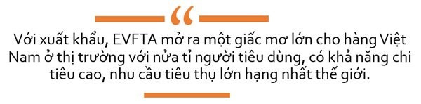 Kể cả ở chiều ngược lại, với EVFTA, doanh nghiệp cũng có quyền mơ về một giấc mơ khác. Giấc mơ cắt giảm chi phí sản xuất, nâng cao năng lực cạnh tranh, nhờ tiếp cận được những công nghệ nguồn, máy móc thiết bị hiện đại, các dịch vụ logistics, tài chính, bảo hiểm và dịch vụ thiết yếu khác phục vụ sản xuất từ EU với giá tốt nhất khi Việt Nam mở cửa thị trường cho hàng hóa, dịch vụ, đầu tư từ EU. Và tất nhiên, cùng với đó là cơ hội tham gia vào chuỗi sản xuất toàn cầu, thậm chí xa hơn, vươn lên những nấc cao hơn trong chuỗi giá trị và lợi nhuận.