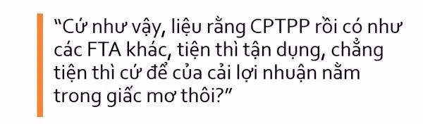 Cơ quan nhà nước đã vậy, chẳng khó đoán sự chuẩn bị của doanh nghiệp còn mỏng manh hoặc chật vật tới đâu. Với phần lớn các doanh nghiệp, những câu hỏi như cam kết nói gì, cơ hội ở đâu, cần phải làm gì... đều chưa có lời giải cụ thể. Cứ như vậy, liệu rằng CPTPP rồi có như các FTA khác, tiện thì tận dụng, chẳng tiện thì cứ để của cải lợi nhuận nằm trong giấc mơ thôi?
