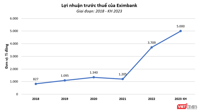 Theo đó, năm 2023, Eximbank đặt mục tiêu lãi trước thuế 5.000 tỉ đồng, tăng 35% so với năm trước.