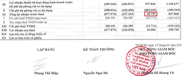 Còn nếu đem so sánh với mục tiêu lợi nhuận 1.800 tỷ đồng mà ngân hàng đã đặt ra cho 2014 thì số “lời” chưa đầy 69 tỷ đồng trên mới đạt… 3,8% kế hoạch năm.