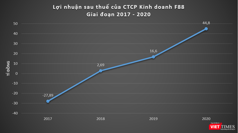 CTCP Kinh doanh F88 (F88) vừa công bố kết quả kinh doanh năm 2020 với lợi nhuận sau thuế đạt 44,8 tỉ đồng, cao gấp gần 2,7 lần so với năm 2019.