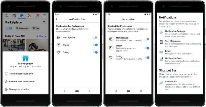 Cuối tuần qua, TechCrunch phát hiện có thể gỡ một số thẻ trên ứng dụng Facebook như Marketplace, Watch, Groups, Events, Profile, Friend Requests, News, Today In, Gaming và Dating hoặc tắt thông báo từ các mục này. Facebook xác nhận với trang tin từ nay mọi người dùng ứng dụng đều được sử dụng tính năng Shortcut Bar Settings để thiết lập cài đặt mới. Tuy nhiên, người dùng iOS được trang bị đầu tiên còn Android phải chờ thêm vài tuần.