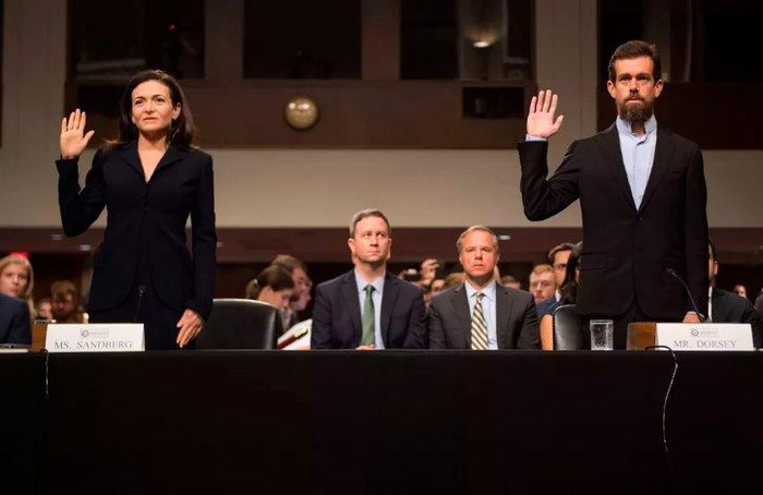 Ngoài sự vắng mặt các nhà lãnh đạo của Google thì CEO Jack Dorsey của Twitter và COO Sheryl Sandberg của Facebook đã đến sự kiện diễn ra tại Capitol Hill, để cung cấp thông tin chi tiết về cách thức các chính phủ nước ngoài sử dụng nền tảng mạng xã hội để truyền bá thông tin sai lệch.