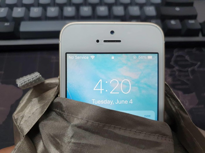 Chiếc túi chặn sóng khiến iPhone không thể nhận bất kỳ kết nối nào.