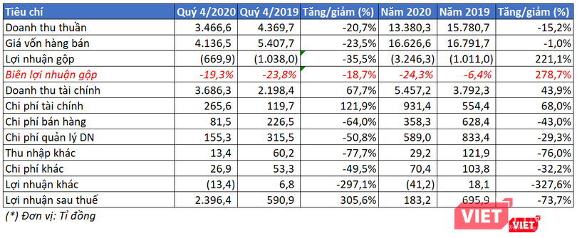 Lũy kế cả năm 2020, FLC đạt doanh thu thuần hơn 13.380 tỷ đồng. Tập đoàn này báo lãi trước thuế cả năm 2020 đạt gần 300 tỉ đồng, lãi sau thuế 183,2 tỉ đồng.
