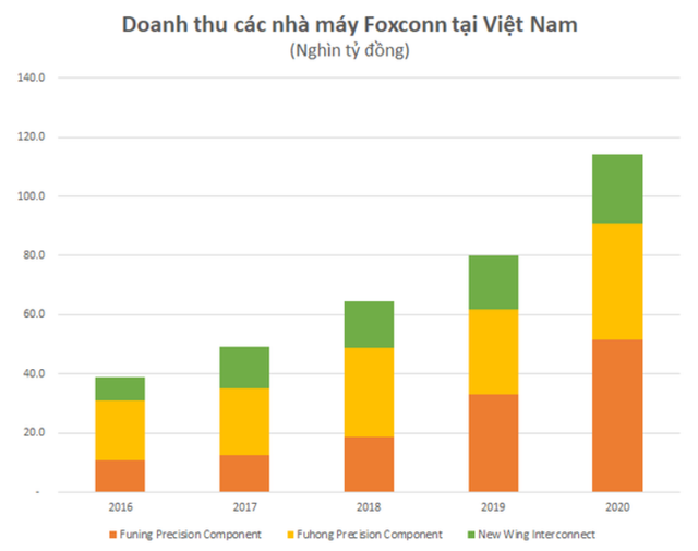 Tại Việt Nam, Foxconn không phải là doanh nghiệp quá xa lạ khi đã có mặt tại nước ta tới 15 năm, với các nhà máy chủ chốt đặt tại Bắc Ninh và Bắc Giang. Năm 2020, chỉ riêng 3 công ty hoạt động lâu năm là Fuhong, Funing và New Wing Interconnect Technology đã có tổng doanh thu tới 5 tỷ USD.