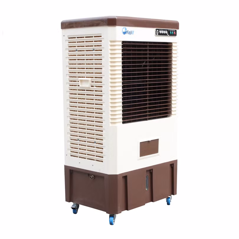 Các máy làm mát FujiE có thiết kế khung kim loại nên ít rung, ít ồn hơn khi hoạt động so với các dòng máy làm mát dùng vỏ nhựa. Khung máy được sơn tĩnh điện với màu sắc phù hợp với nhiều không gian phòng khác nhau. Bên cạnh đó, các sản phẩm được thiết kế dễ tháo lắp để vệ sinh các tấm làm mát và bình chứa nước, chỉ cần tháo 1 con ốc duy nhất bên ngoài máy. Mỗi máy làm mát đều có bánh xe quay được 360 độ để di chuyển thuận tiện.