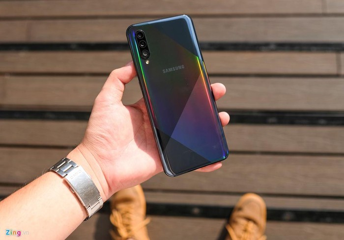 Điểm khác biệt dễ nhận thấy nhất trên Galaxy A50s so với phiên bản tiền nhiệm đến từ họa tiết các đường cắt to bản ở mặt lưng. Tuy nhiên, mặt lưng của máy vẫn được hoàn thiện bằng chất liệu nhựa giả kính.