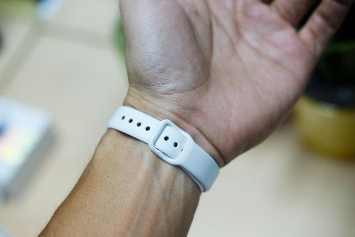 Chi tiết dây đeo được cố định với lẫy kèm chốt và giấu vào trong giúp vòng đeo bám chắc trên tay hơn, hạn chế trường hợp vận động mạnh hay va quẹt có thể khiến vòng đeo bị rơi ra đồng thời tăng tính thẩm mỹ.