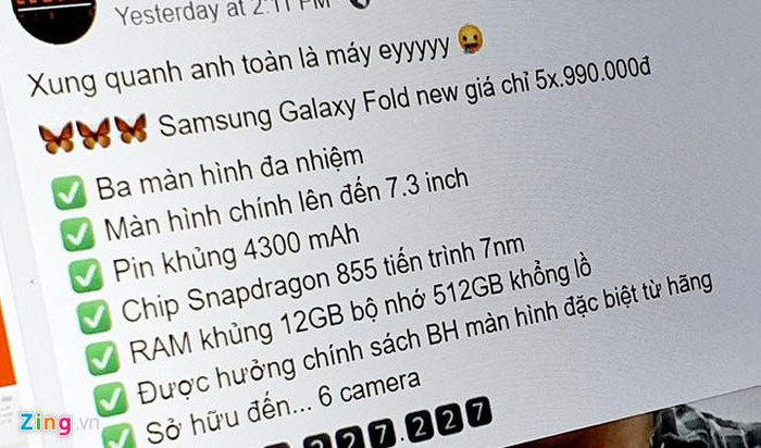 Galaxy Fold đang được rao bán với giá từ 53 triệu đồng.