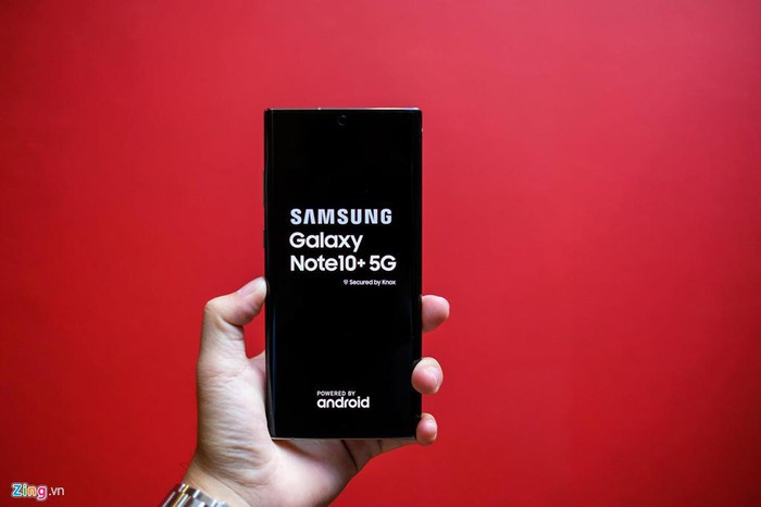 Theo các cửa hàng, Galaxy Note10+ 5G được xách tay từ thị trường Hàn Quốc. Model này có thiết kế không quá khác biệt so với phiên bản thường. Máy vẫn sở hữu màn hình đục lỗ được Samsung gọi là Infinity-O, hệ thống 4 camera sau đặt dọc.