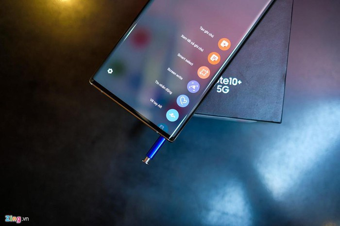 Những tính năng trên bút S Pen của máy vẫn giống như phiên bản thường. Ngoài các tác vụ như viết, vẽ, tôi có thể dùng chiếc bút này để điều khiển các thao tác khi chụp ảnh như "vẩy" bút sang bên trái/phải để chuyển đổi các chế độ chụp, lên/xuống để chuyển sang camera selfie và xoay tròn để zoom.