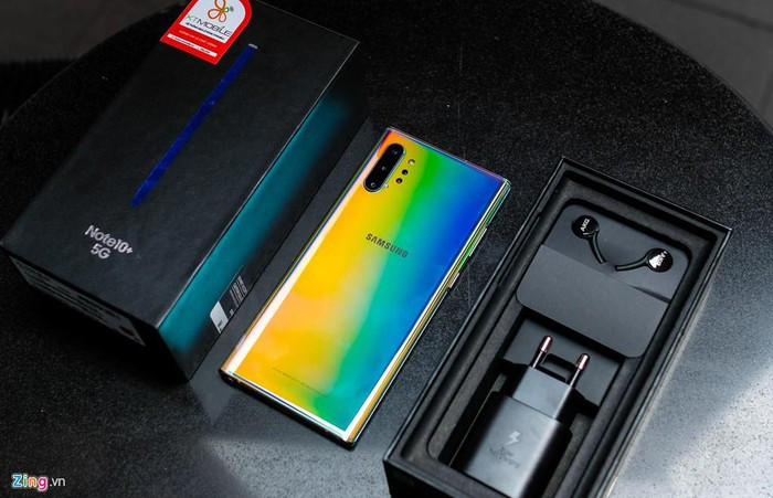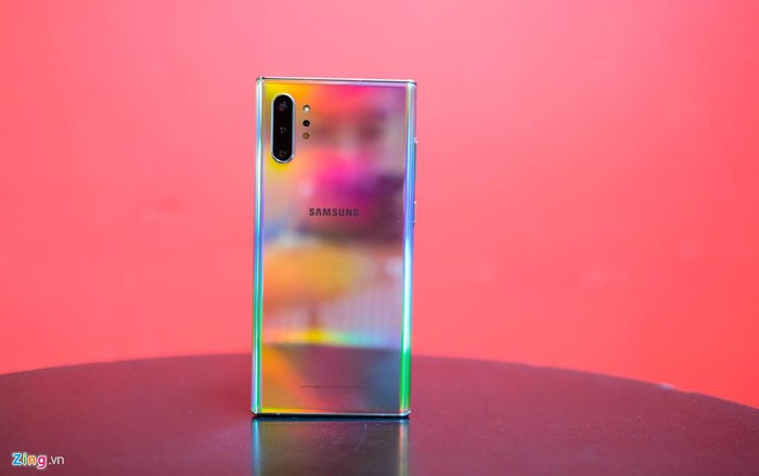 Galaxy Note10+ 5G vẫn có phiên bản màu gradient, thay đổi nhiều màu sắc khác nhau theo độ nghiêng.