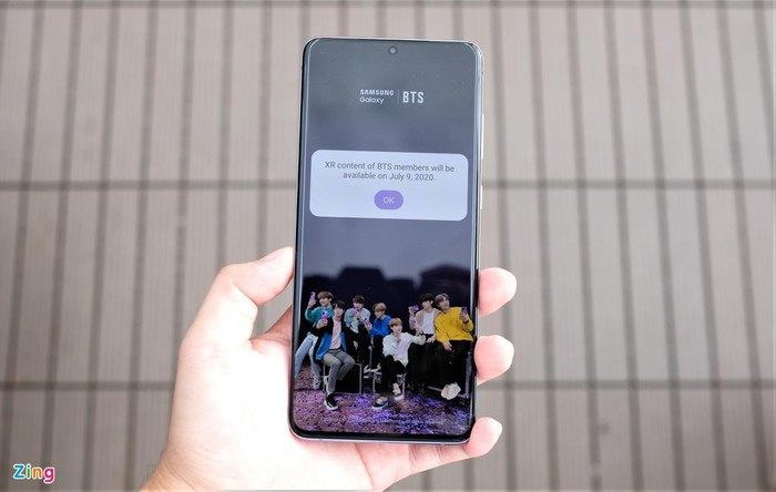 Thiết bị có ứng dụng BTS XR Snapshot. Đây là phần mềm chụp ảnh, quay phim kết hợp công nghệ thực tế ảo tăng cường (AR), giúp người dùng có thể đứng chung khung hình với thần tượng của mình. Tuy nhiên, hiện tại phần mềm này chưa sử dụng được cho đến ngày 9/7. Đây cũng là thời điểm máy chính thức lên kệ tại Việt Nam.