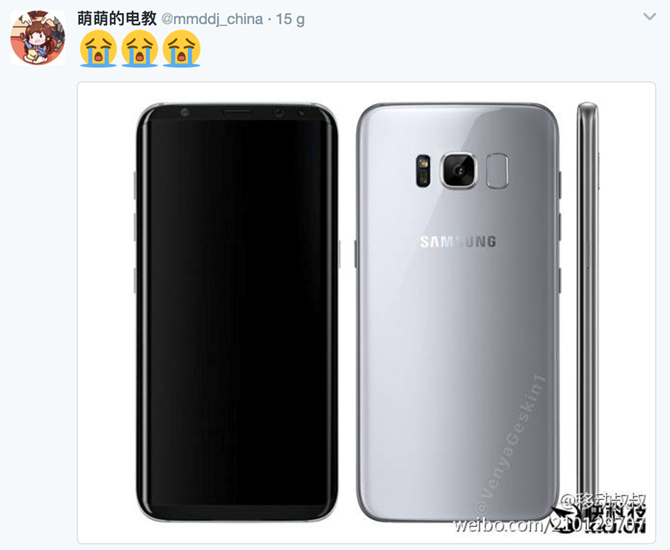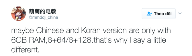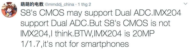 Tài khoản Twitter @mmddj_china cũng chia sẻ hình ảnh tương tự về Galaxy S8 nhưng phiên bản màu xám, bên cạnh đó còn hé lộ thêm giá bán flagship này. Tại thị trường Châu Á, Galaxy S8 sẽ lên kệ ít nhất 2 tuỳ chọn bộ nhớ trong 64GB hoặc 128GB với mức giá lần lượt là 885USD (khoảng 20,2 triệu đồng) và 943USD (21,5 triệu). Trước đó, một vài nguồn tin cũng đã tiết lộ giá bán Galaxy S8 tại thị trường Châu Âu là 850 euro (khoảng 20,7 triệu) cho phiên bản duy nhất RAM 4GB bộ nhớ trong 64GB. Ngoài ra tài khoản này còn cho biết Galaxy S8 sẽ sử dụng ống kính Dual ADC thay vì ống kính Sony IMX204 khẩu độ f/1.7 và 20MP.