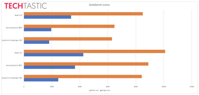 Vấn đề hao hụt năng lượng là thực sự đáng tiếc trên mẫu flagship như Galaxy S9/S9+. Trớ trêu hơn, thủ phạm lại là chip xử lý do Samsung tự sản xuất. Theo kết quả Geekbench được công bố, Galaxy S9 dùng chip Exynos đạt điểm đơn, đa nhân lần lượt là 3.648 và 8.894; cao hơn bản dùng chip Snapdragon 845 (2.378 và 8132). Xung nhịp cao hơn đôi chút (0.1Ghz) trên lõi tiết kiệm điện có thể là tác nhân chính làm cho chip Exynos ngốn pin hơn dự kiến.