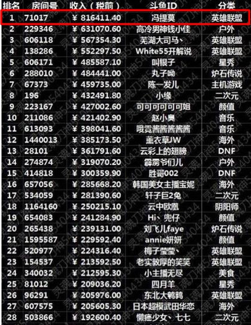 Bảng thống kê số tiền mà các nữ streamer hàng đầu kiếm được trong vòng 1 tháng tại Trung Quốc