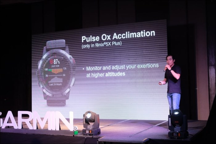 Đại diện nhà phân phối Synex FPT đang giới thiệu tính năng Pulse Ox Acclimation trên fenix 5X Plus.