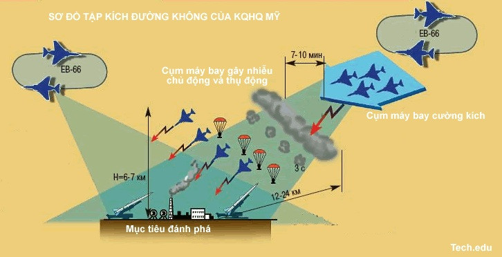 Trong những trường hợp ném bom ở khu vực có lực lượng phòng không yếu, máy bay Mỹ tiến hành các đợt ném bom thành nhiều lần. Các hoạt đông Tác chiến điện tử TCĐT chỉ giới hạn trong khuôn khổ thông báo cho máy bay tấn công chủ lực (cường kích ném bom) và máy bay trinh sát về sự hiển diện của các đài radar pháo binh mặt đất. Đôi khi các tốp máy bay cường kích được sự yểm trợ của các máy bay TCĐT gây nhiễu, các máy bay này không bay vào vùng hỏa lực phòng không.