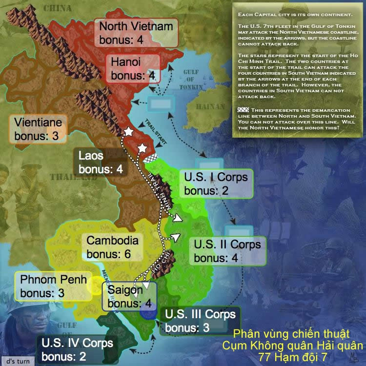 Từ tháng 4.1966 để tập trung hỏa lực của không quân trên toàn bộ lãnh thổ Việt Nam đã phân chia khu vực tác chiến cho Không quân và Không quân Hải quân Mỹ, trong đó Không quân Hải quân Mỹ chịu tránh nhiệm vùng ven biển, đơn giản hóa nhiệm vụ chiến đấu của KQHQ Mỹ.