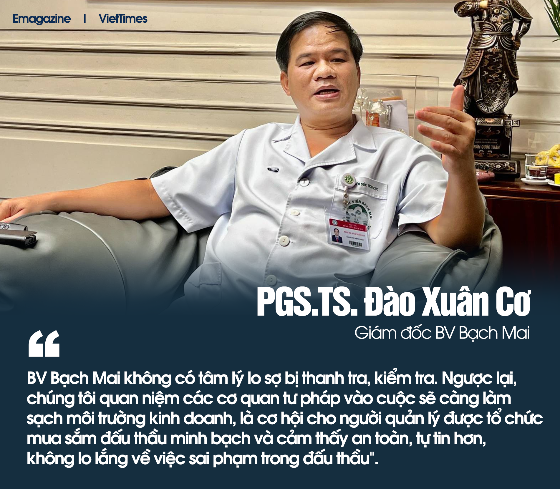 Về nguyên nhân chủ quan, BV Bạch Mai không có tâm lý lo sợ bị thanh tra, kiểm tra. Ngược lại, chúng tôi quan niệm các cơ quan tư pháp vào cuộc sẽ càng làm sạch môi trường kinh doanh, là cơ hội cho người quản lý được tổ chức mua sắm đấu thầu minh bạch và cảm thấy an toàn, tự tin hơn, không lo lắng về việc sai phạm trong đấu thầu. Các cơ quan tư pháp làm việc cũng không gây cản trở trong mua sắm đấu thầu, mà càng buộc các doanh nghiệp phải minh bạch, trong bối cảnh đã có các văn bản quy định về giá, nhưng chưa công bố hết và đầy đủ.