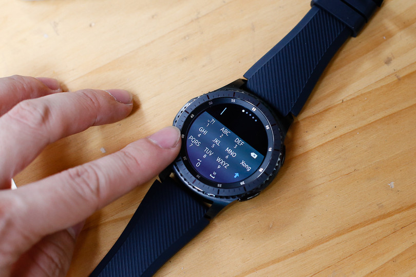 Tuy nhiên, việc trả lời tin nhắn và soạn văn bản trên Gear S3 Frontier khá bất tiện dù có sẵn khá nhiều câu trả lời mẫu. Vì bàn phím ảo để nhập liệu của đồng hồ rất nhỏ và bố trí theo dạng bàn phím T9 nên muốn gõ đầy đủ, có tiếng Việt tốn thời gian và khó khăn. Có hỗ trợ nhập liệu bằng giọng nói nhưng phần mềm hiện giờ của Samsung lại chưa có khả năng nhận dạng tiếng Việt.