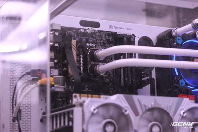 Hệ thống thấp cấp hơn, dùng card GeForce 1070 được trang bị tản nhiệt nước xanh dương để phân biệt.