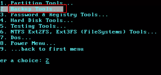 Chọn tiếp Backup Tools