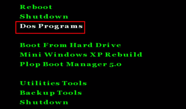 Cài xong Hiren Boot lên USB, bạn chọn Dos Programs.