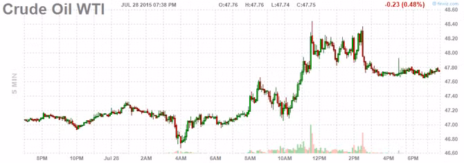 Giá dầu thô Mỹ giao tháng Chín tăng 59 cent, tương ứng 1,2%, lên 47,98USD/thùng trên sàn Nymex New York, ngắt mạch giảm 4 phiên liên tục.