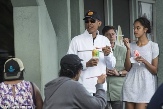 Còn về ăn uống, gia đình ông Obama sẽ ra ngoài ăn tối cùng bạn bè, thỉnh thoảng đi ăn kem cầu vồng - đặc sản địa phương. Theo thống kê của trang ẩm thực Yelp, nhà hàng gia đình ông Obama hay lui tới nhất là AlanWong, mức chi trung bình cho mỗi người trong gia đình khoảng 100 USD.