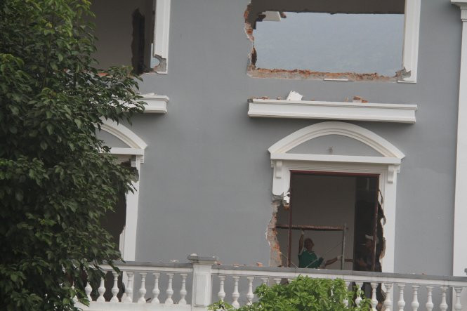 Theo quan sát, có khá nhiều nhân công tham gia tháo dỡ biệt thự, các cánh cửa gỗ của ngôi nhà đã được tháo ra hoàn toàn. Nhân công cũng đang dùng máy khoan để phá sàn nhà và đập bỏ các bức tường.
