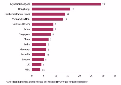 Ở đây, chúng ta không bàn đến câu chuyện giá nhà đắt hay rẻ, mà qua những nghiên cứu của các tổ chức trên có thể thấy rõ giá nhà Việt Nam đang thấp hơn khá nhiều so với một số nước trong khu vực. Tuy nhiên, vấn đề giá BĐS ở quốc giá đó cao hay thấp còn cần được so sánh tương quan với nhiều yếu tố khác như mức độ thu nhập, điều kiện kinh tế, thị trường…