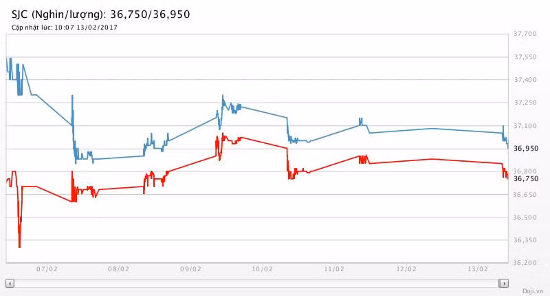 Tương tự, tại các đại lý của Doji, giá vàng miếng SJC cũng được tập đoàn này điều chỉnh tăng 100 nghìn đồng mỗi chiều lên yết ở 36,75 – 36,95 triệu đồng/lượng (MV-BR) đối với giao dịch lẻ; và đắt hơn 10 nghìn đồng chiều mua, đồng thời rẻ hơn 10 nghìn đồng chiều bán đối với giao dịch buôn ở thị trường Hà Nội. Hiện, doãng chênh lệch 2 chiều mua - bán ở Doji là 200 nghìn đồng/lượng.