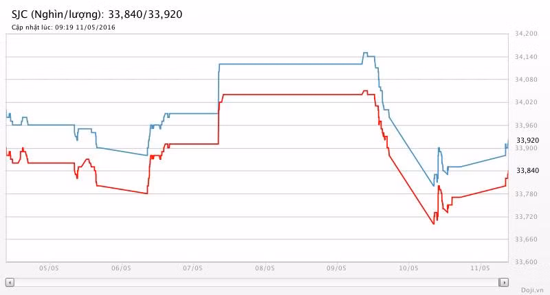 Tương tự, tại các đại lý Doji, giá vàng miếng SJC cũng được Tập đoàn điều chỉnh tăng 70 nghìn đồng mỗi lượng lên niêm yết ở 33,84 – 33,92 triệu đồng/lượng (MV-BR) đối với giao dịch lẻ; và đắt hơn 10 nghìn đồng chiều mua, đồng thời rẻ hơn 10 nghìn đồng chiều bán đối với giao dịch buôn ở thị trường Hà Nội. Với biểu giá này, doãng chênh lệch 2 chiều mua – bán vàng SJC tại Doji hiện ở mức 80 nghìn đồng/lượng.