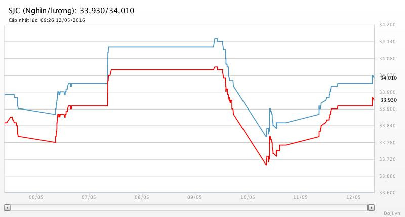 Còn tại thị trường trong nước, mở cửa phiên giao dịch sáng nay (Thứ Năm ngày 12/05), giá vàng SJC chỉ khẽ nhích.