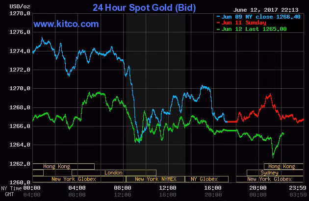 Chốt phiên giao dịch đầu tuần (Thứ Hai ngày 12/6), giá vàng giao tháng Tám trên sàn Comex tại Sở Giao dịch New York Mercantile giảm tiếp $2,50 (-0,2%) chốt tại $1.268,90/oz – đánh dấu chuỗi giảm 4 phiên liên tiếp.