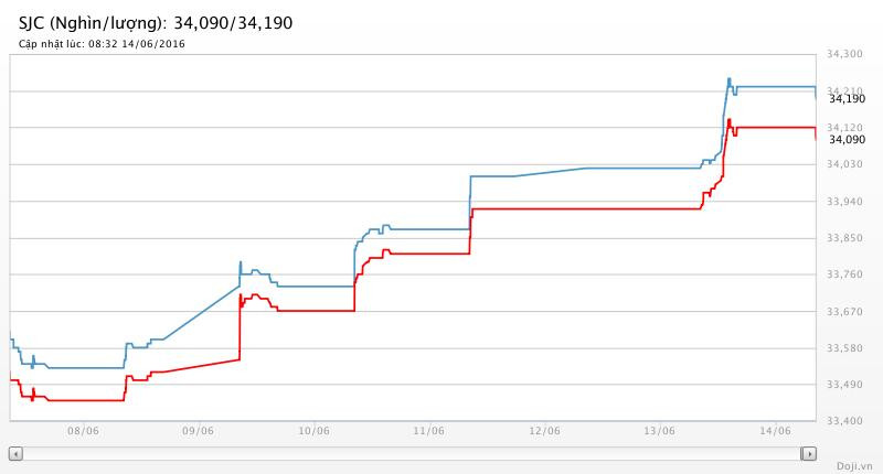 Tương tự, tại các đại lý của Doji, giá vàng miếng SJC cũng được Tập đoàn điều chỉnh giảm 30 nghìn đồng mỗi chiều về yết ở 34,09 – 34,19 triệu đồng/lượng (MV-BR) đối với giao dịch lẻ; và đắt hơn 10 nghìn đồng chiều mua, đồng thời rẻ hơn 10 nghìn đồng chiều bán đối với giao dịch buôn ở thị trường Hà Nội. Hiện, doãng chênh lệch 2 chiều mua - bán ở Doji là 100 nghìn đồng/lượng.