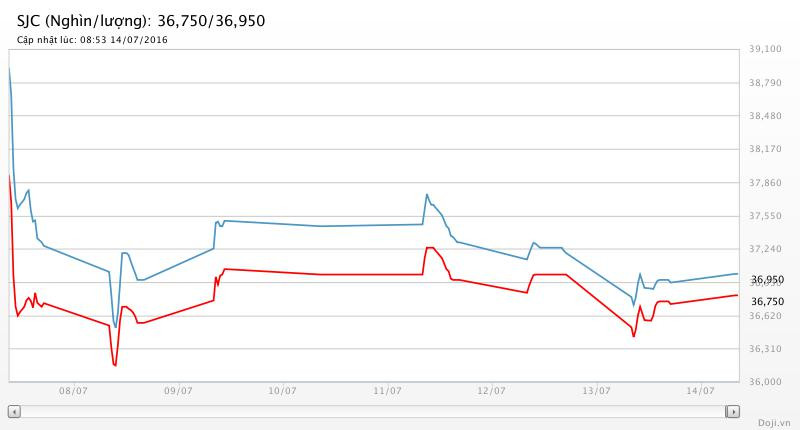 Tương tự, tại các đại lý của Doji, giá vàng miếng SJC cũng được Tập đoàn điều chỉnh tăng 50 nghìn đồng mỗi chiều lên yết ở 36,75 – 36,95 triệu đồng/lượng (MV-BR) đối với giao dịch lẻ; và đắt hơn 10 nghìn đồng chiều mua, đồng thời rẻ hơn 10 nghìn đồng chiều bán đối với giao dịch buôn ở thị trường Hà Nội. Hiện, doãng chênh lệch 2 chiều mua - bán ở Doji là 200 nghìn đồng/lượng.