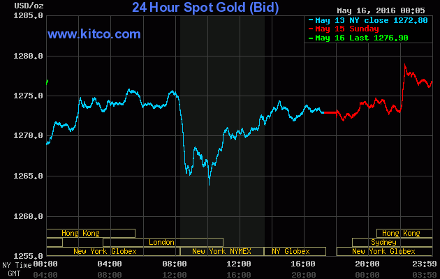 Còn trên phương thức giao dịch điện tử, tính đến thời điểm 11h05’ sáng nay (giờ Việt Nam), giá vàng giao ngay Comex đang đứng ở  $1.276,71/oz.