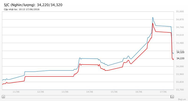 Tương tự, tại các đại lý của Doji, giá vàng miếng SJC cũng được Tập đoàn điều chỉnh giảm 430 nghìn đồng mỗi chiều xuống yết ở 34,22 – 34,32 triệu đồng/lượng (MV-BR) đối với giao dịch lẻ; và đắt hơn 10 nghìn đồng chiều mua, đồng thời rẻ hơn 10 nghìn đồng chiều bán đối với giao dịch buôn ở thị trường Hà Nội. Hiện, doãng chênh lệch 2 chiều mua - bán ở Doji là 100 nghìn đồng/lượng.