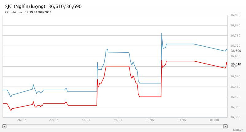 Còn tại thị trường trong nước, mở cửa phiên giao dịch sáng nay (Thứ Hai ngày 1/8), giá vàng SJC không biến động nhiều.