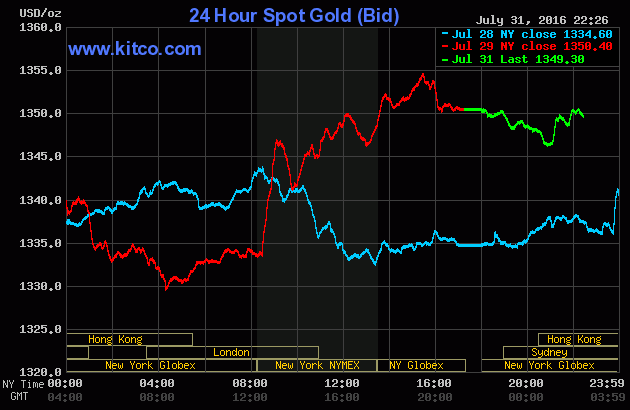 Chốt phiên giao dịch cuối tuần trước (Thứ Sáu ngày 29/07), giá vàng giao tháng Mười hai trên sàn Comex tại Sở giao dịch New York Mercantile tăng mạnh $16,30 (+1,2%) lên đóng cửa ở $1.357,50/oz, lập đỉnh kể từ ngày 8/7. Theo dữ liệu của FactSet, vàng đã tăng giá 2,6% trong tuần vừa qua và 2,8% trong tháng qua, đánh dấu tháng tăng giá thứ 6 trong 7 tháng đầu năm 2016.