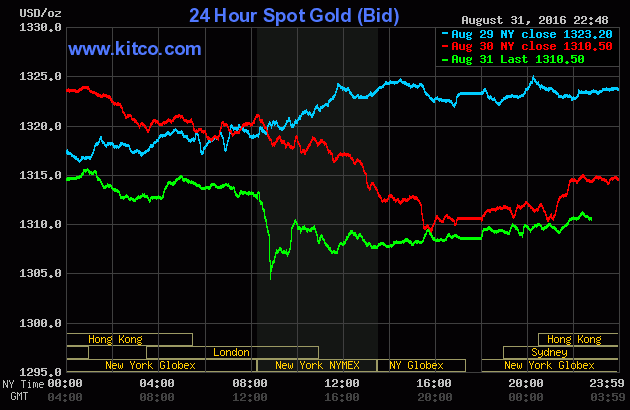 Cùng lúc, tại thị trường châu Á, giá vàng miếng giao ngay trên sàn Kitco lại được yết ở $1.310,50/oz.
