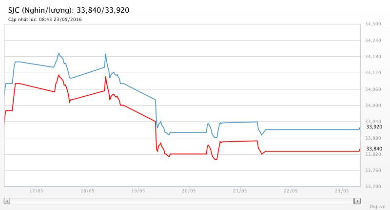 Tương tự, tại các đại lý của Doji, giá vàng miếng SJC cũng được Tập đoàn điều chỉnh nhích nhẹ 10 nghìn đồng mỗi chiều lên yết ở 33,84 – 33,92 triệu đồng/lượng (MV-BR) đối với giao dịch lẻ; và đắt hơn 10 nghìn đồng chiều mua, đồng thời rẻ hơn 10 nghìn đồng chiều bán đối với giao dịch buôn ở thị trường Hà Nội. Hiện, doãng chênh lệch 2 chiều mua - bán ở Doji là 80 nghìn đồng/lượng.