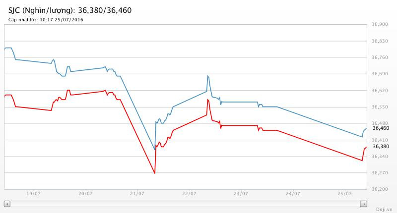Diễn biến giá vàng SJC 7 ngày qua.