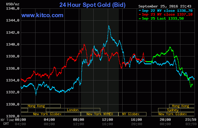 Trên phương thức giao dịch điện tử, tính đến thời điểm 10h43’ sáng nay (giờ Việt Nam), giá vàng giao ngay Comex đang đứng ở $1.333,37/oz.